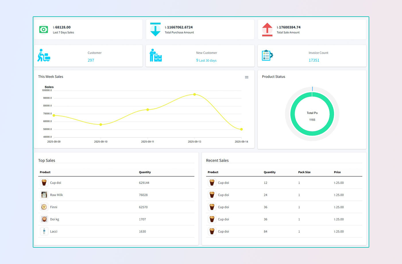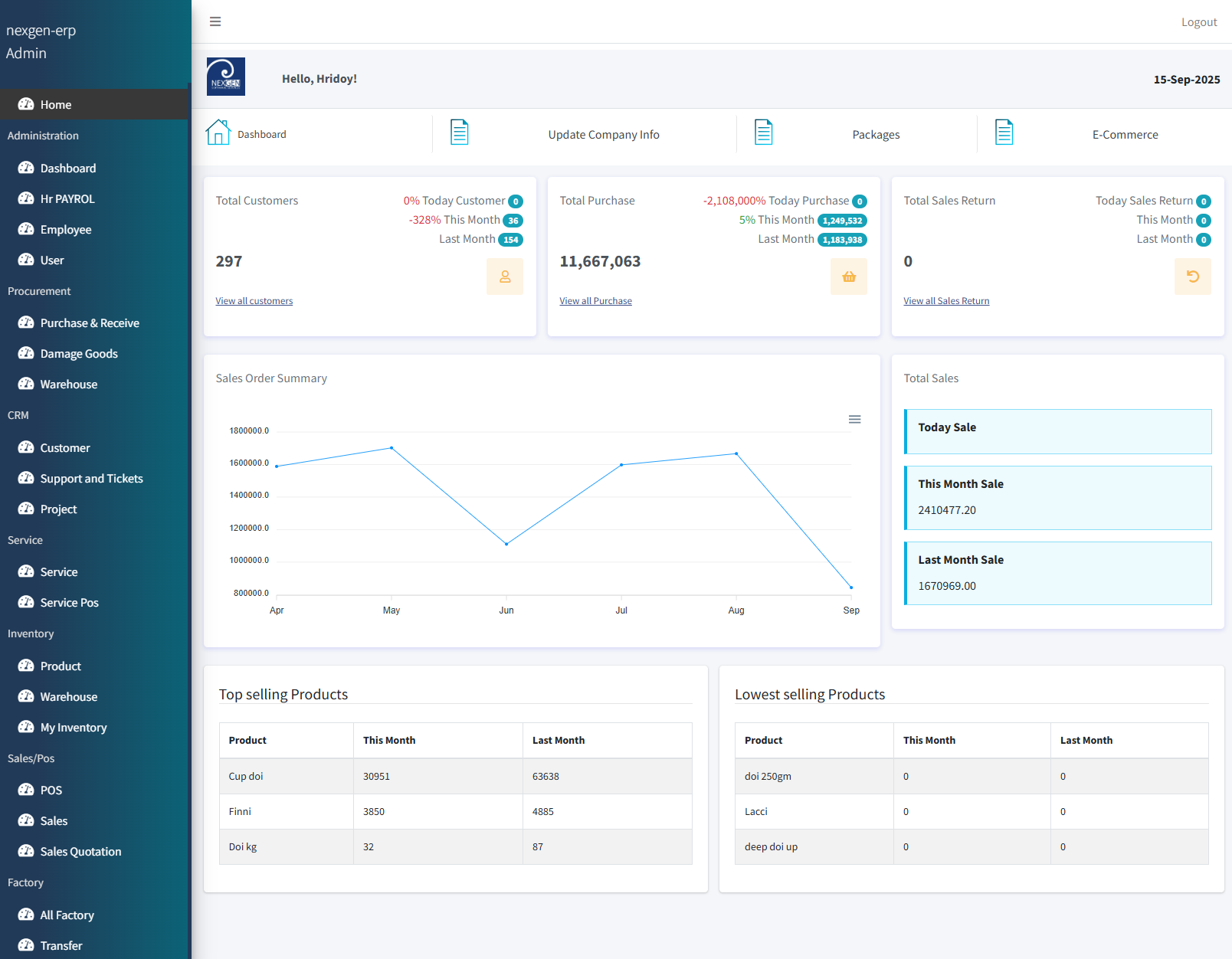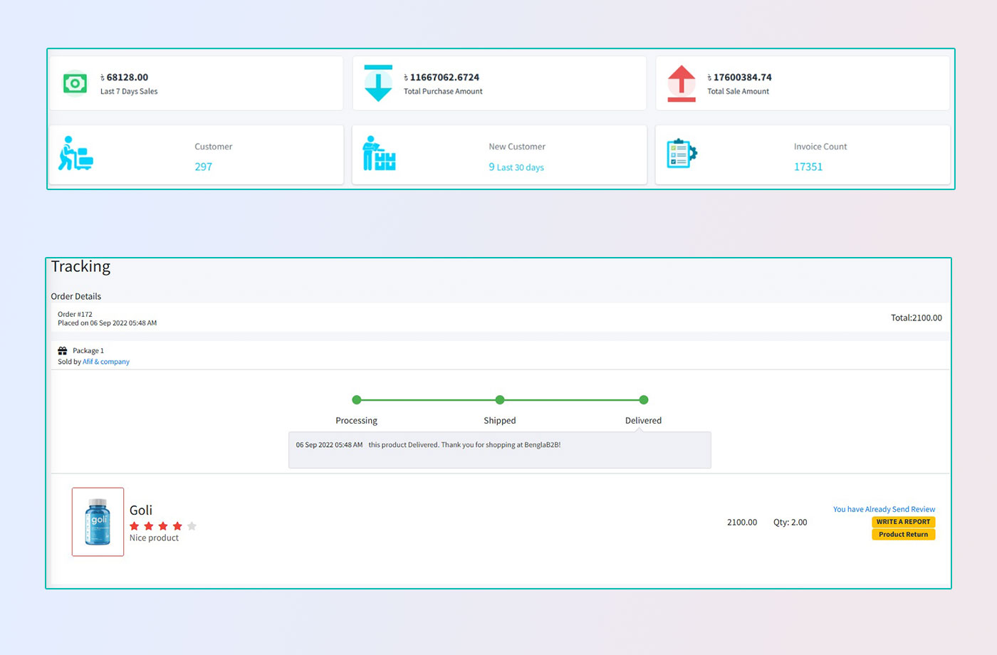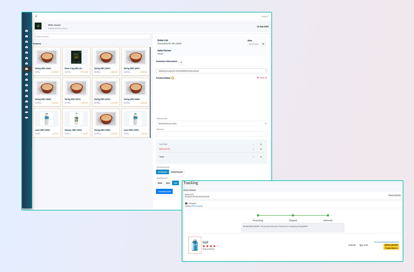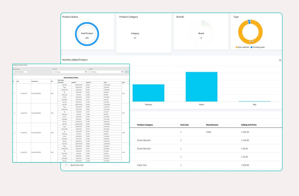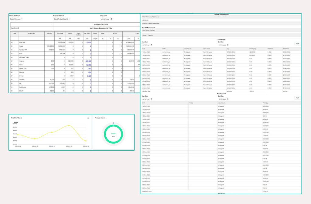 Track stock, warehouses, sales, and billing with real-time updates.